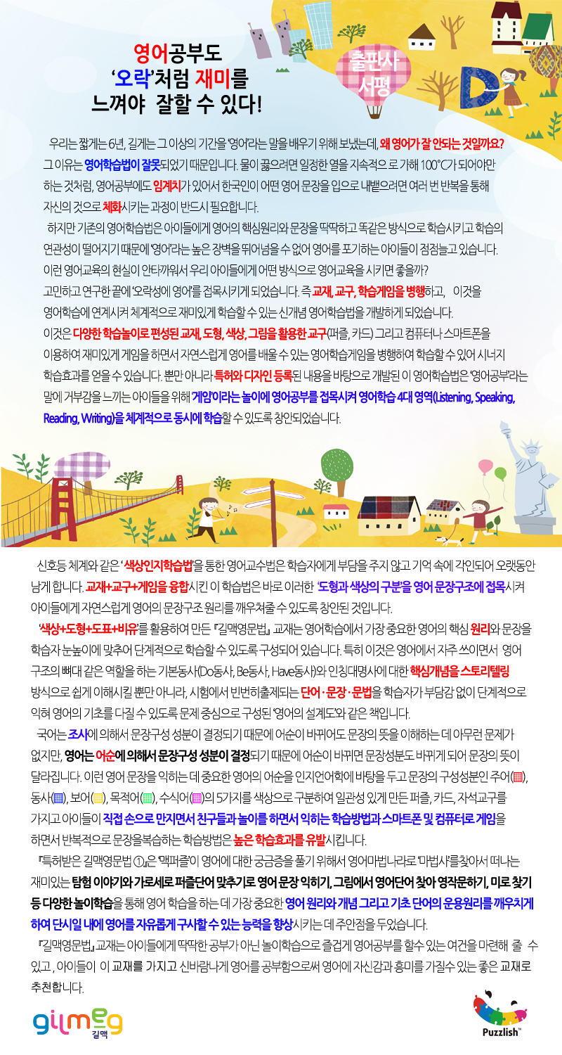 특허받은 길맥영문법 교재 + 영어학습게임(스마트폰/ 컴퓨터용)